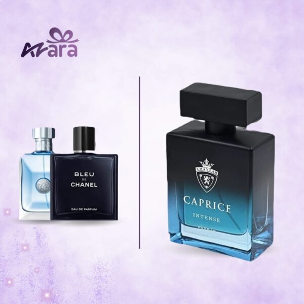 Bold, refined, and irresistibly modern, Caprice is an exclusive fragrance inspired by the daring fusion of Versace Pour Homme and Bleu de Chanel. It blends Mediterranean freshness with deep woody sensuality, creating a scent that embodies sophistication, confidence, and effortless style.