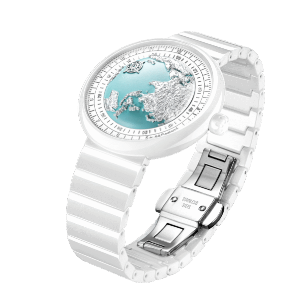 | 1. A Unisex Evolution Inspired by the Blue Planet 2. CNC-carved Dial Coated by Sterling Silver & Glacial Blue 3. Ice-white Ceramic Case, Pristine and Timeless 4. Sapphire Crystal for Timeless Durability and Clarity 5. Ergonomic Ceramic Strap with Hidden Clasp 6. Versatile Silicone and Ceramic Straps for Any Occasion |